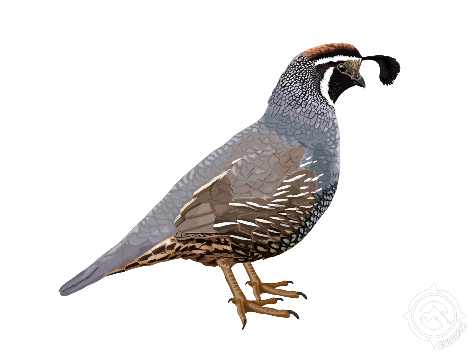 California quail are compact, fast-moving birds about the size of a softball with that signature teardrop plume bobbing on their heads. These social birds stick together in coveys, preferring brushy areas near water sources and open feeding spots. They're ground dwellers that would rather run than fly, darting through thick cover like feathered rockets. When they do flush, it's sudden and loud - a real heart-stopper that catches hunters off guard. Hunting stays productive year-round here, but early morning and late afternoon see the most bird movement as they search for food and water. Hunters love quail for their lightning-quick flushes and the way they challenge your reflexes. The meat's fantastic too - tender and mild. Best trick I can share: hunt the transition zones between thick brush and open areas, and stay ready because quail explode without warning.